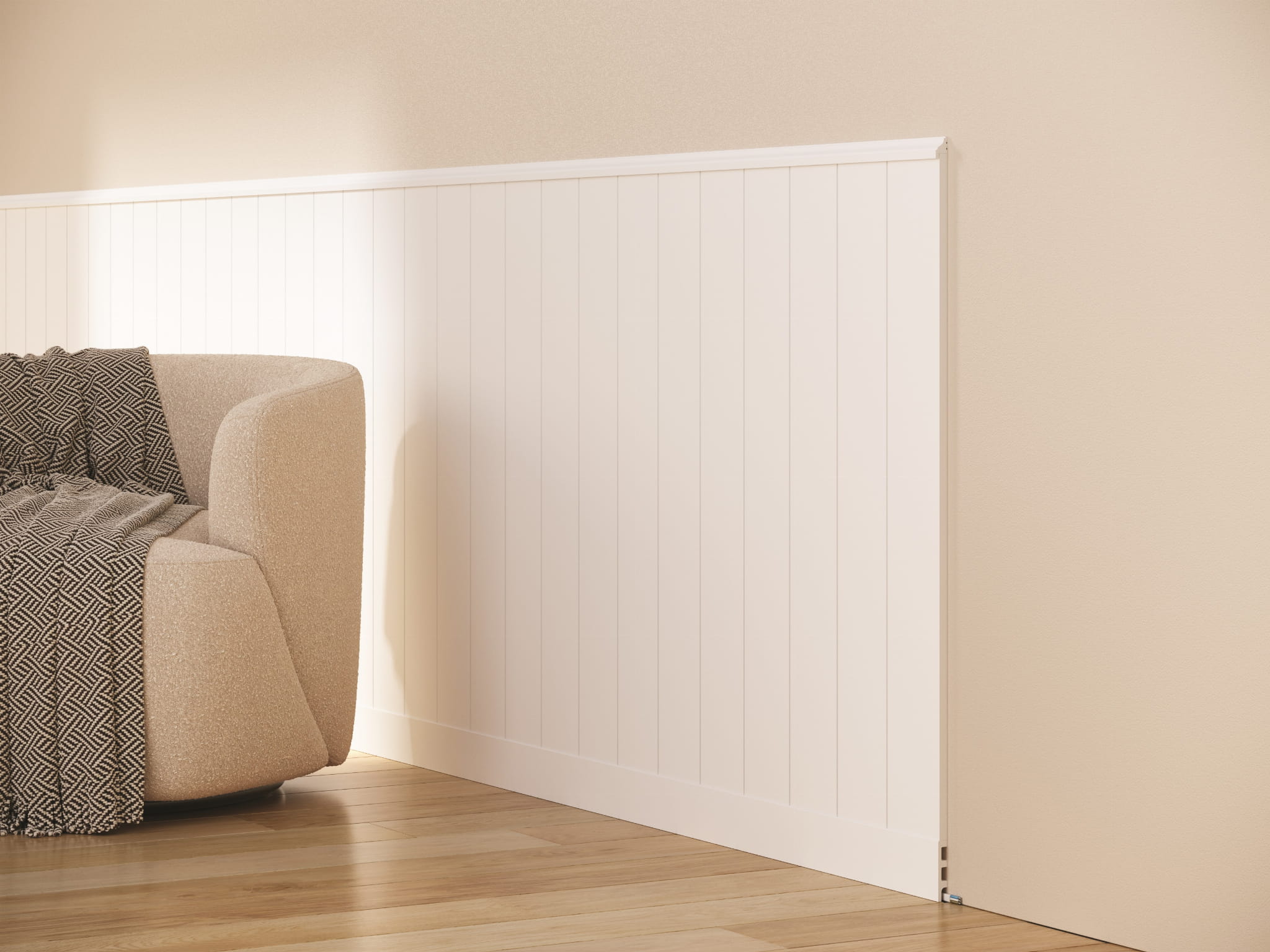 Boazeria angielska TP004 Mardom Decor. System listew i paneli do dolnej partii ścian. Chroni powierzchnię przed uderzeniami, porządkuje długie korytarze i umożliwia atrakcyjne podziały kolorystyczne. Geometryczna, industrialna forma podkreśla minimalistyczny charakter i porządkuje przestrzeń. Twardy, wodoodporny i stabilny wymiarowo materiał zapewnia trwałość i czystą krawędź po montażu.