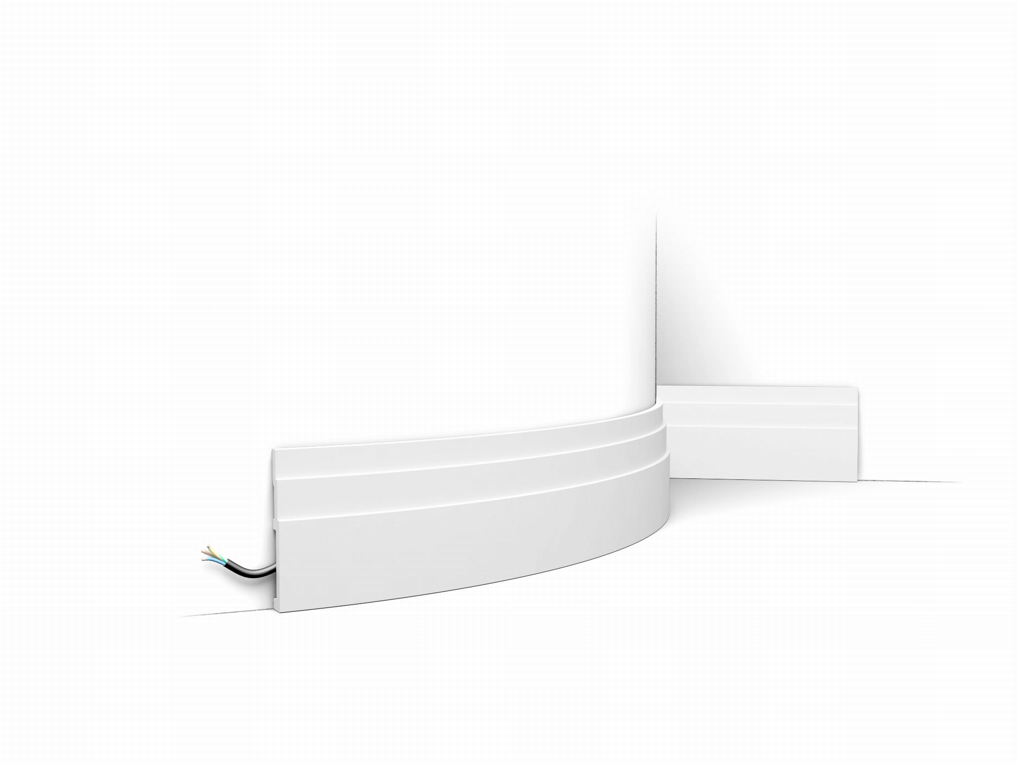 Model wykonano z Duropolymer Orac Decor, to twardy, wysokiej gęstości polimer o podwyższonej odporności mechanicznej. Świetnie nadaje się na listwy przypodłogowe i elementy narażone na uderzenia od odkurzacza czy mopowania. Jest odporny na wilgoć, stabilny wymiarowo i łatwy w utrzymaniu czystości, dlatego sprawdza się w korytarzach, kuchniach oraz innych intensywnie użytkowanych strefach. Gładka powierzchnia po zagruntowaniu równomiernie przyjmuje farbę, a precyzyjne łączenia zapewniają estetyczną, trwałą linię wykończenia.