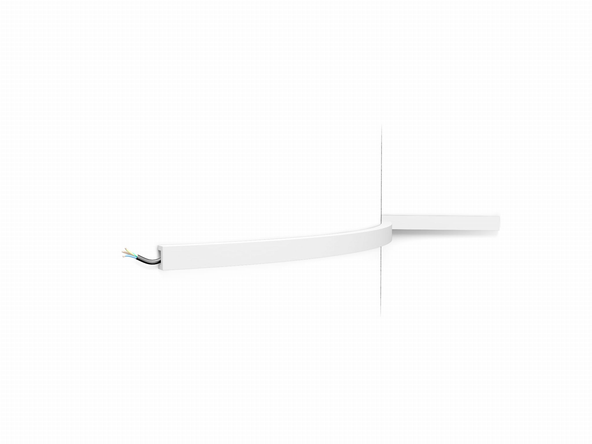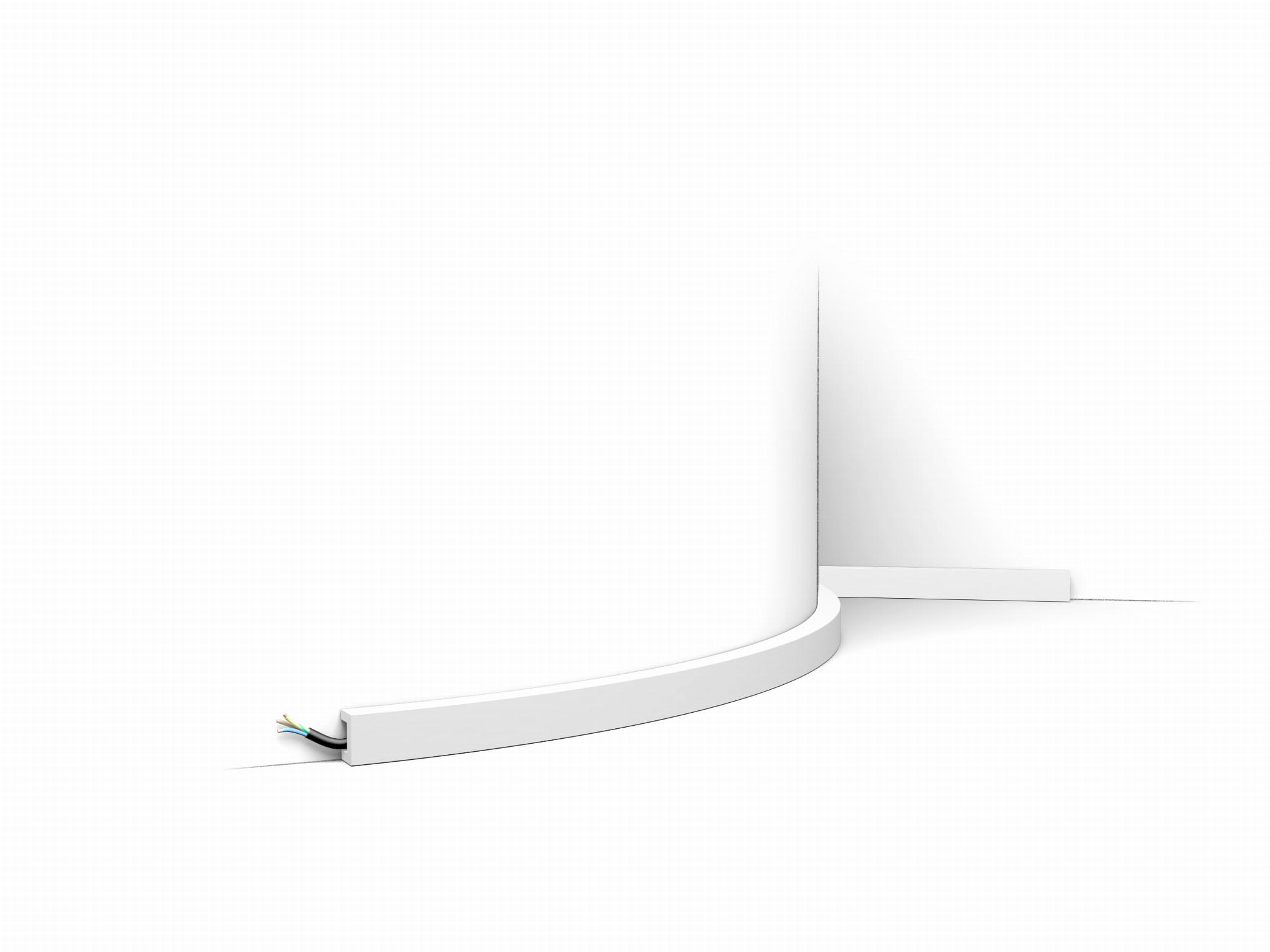 Listwa ścienna CX190F Orac Decor. Geometryczna, industrialna linia porządkuje przestrzeń i podkreśla minimalistyczny charakter. Ułatwia tworzenie ramek i podziałów, porządkując proporcje ściany. Wersja Flex wyłącznie na krzywizny: łuki, kolumny i wykusze; nie do odcinków prostych.