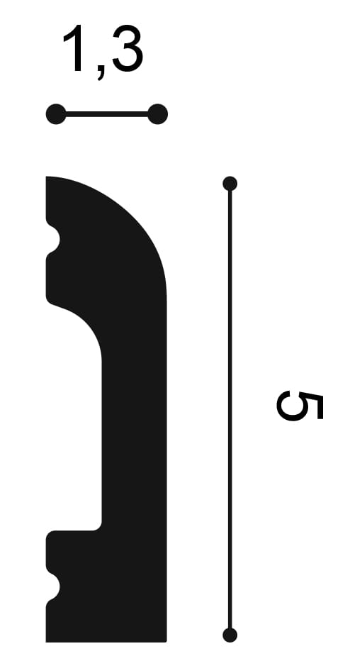 Model wykonano z Duropolymer Orac Decor, to twardy, wysokiej gęstości polimer o podwyższonej odporności mechanicznej. Świetnie nadaje się na listwy przypodłogowe i elementy narażone na uderzenia od odkurzacza czy mopowania. Jest odporny na wilgoć, stabilny wymiarowo i łatwy w utrzymaniu czystości, dlatego sprawdza się w korytarzach, kuchniach oraz innych intensywnie użytkowanych strefach. Gładka powierzchnia po zagruntowaniu równomiernie przyjmuje farbę, a precyzyjne łączenia zapewniają estetyczną, trwałą linię wykończenia.