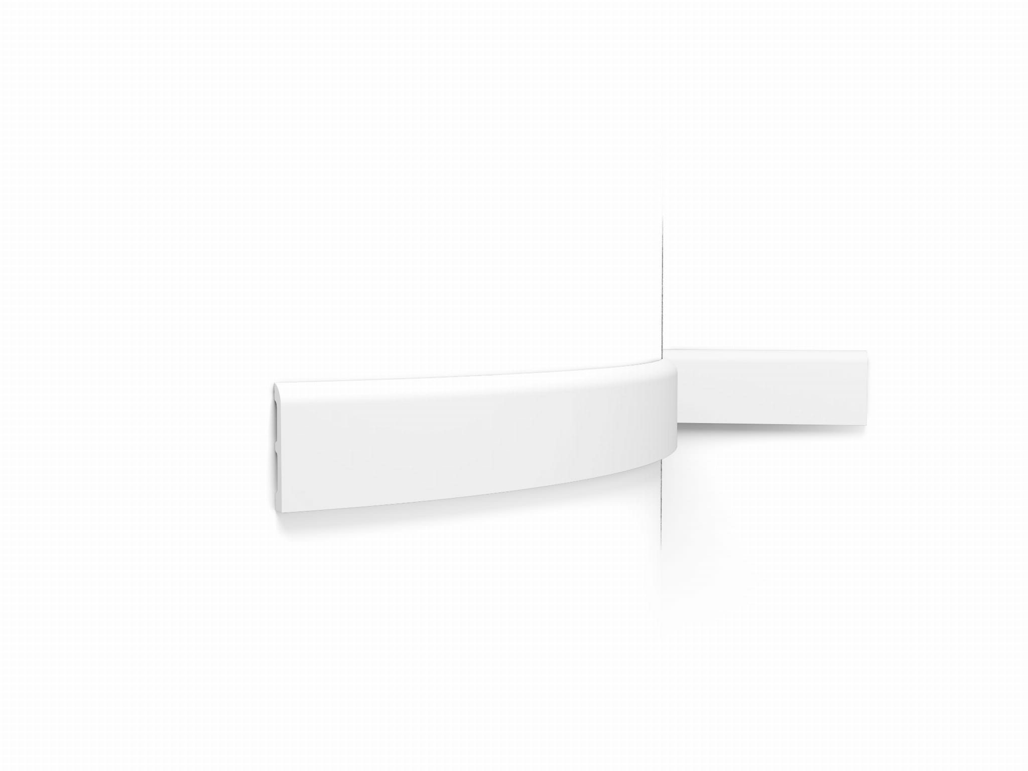 Listwa ścienna SX183F Orac Decor. Geometryczna, industrialna linia porządkuje przestrzeń i podkreśla minimalistyczny charakter. Ułatwia tworzenie ramek i podziałów, porządkując proporcje ściany. Wersja Flex wyłącznie na krzywizny: łuki, kolumny i wykusze; nie do odcinków prostych.