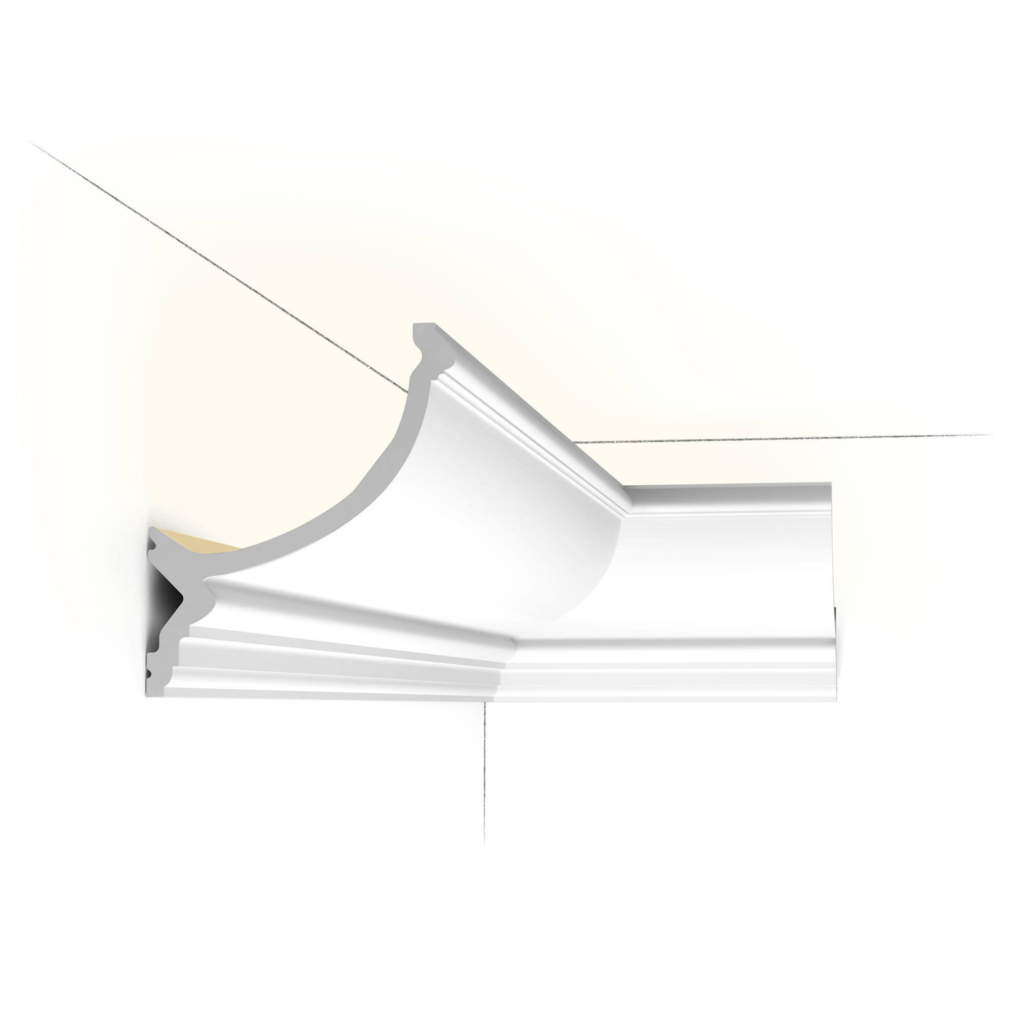 Listwa sufitowa oświetleniowa C900 Orac Decor. Klasyczny profil o bogatym wzornictwie dodaje elegancji i głębi aranżacji. Porządkuje styk ściany i sufitu oraz tworzy subtelny światłocień. Wysoka gęstość wiernie odwzorowuje detal; gładka powierzchnia świetnie przyjmuje farbę. Pozwala dodać dyskretne, pośrednie oświetlenie LED.