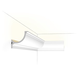 Listwa sufitowa oświetleniowa C902 Orac Decor. Klasyczny profil estetycznie porządkuje proporcje i dodaje ponadczasowego charakteru. Porządkuje styk ściany i sufitu oraz tworzy subtelny światłocień. Wysoka gęstość wiernie odwzorowuje detal; gładka powierzchnia świetnie przyjmuje farbę. Pozwala dodać dyskretne, pośrednie oświetlenie LED.