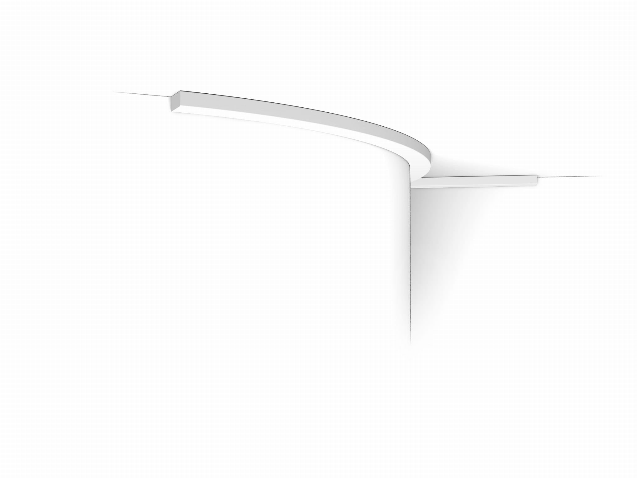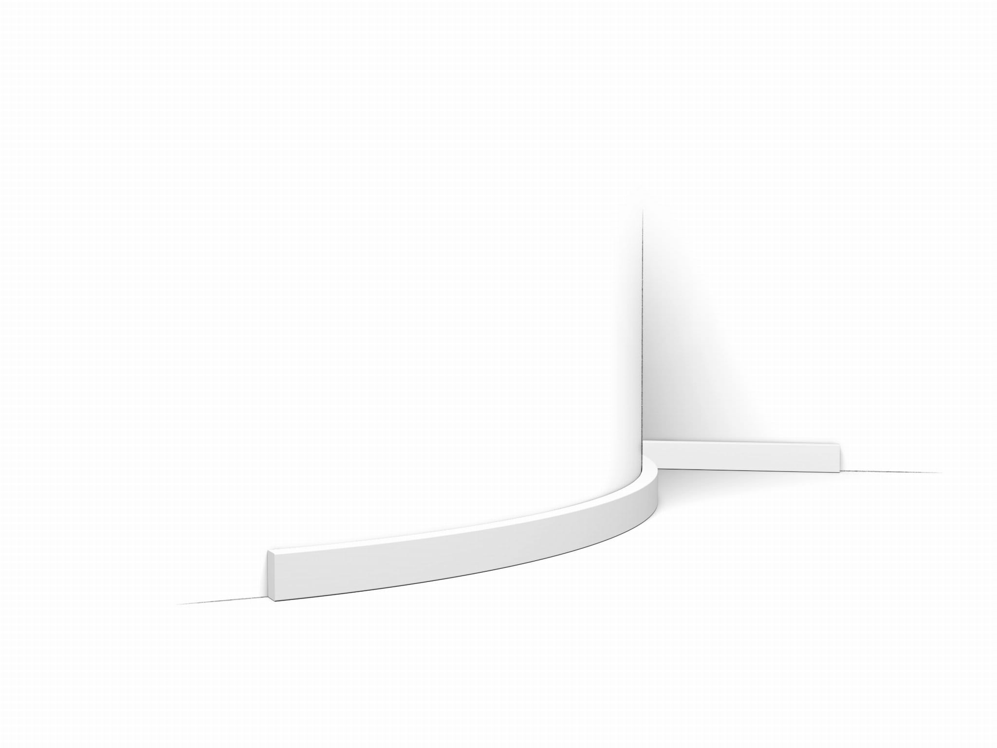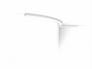 Listwa sufitowa SX194F Orac Decor. Geometryczna, industrialna linia porządkuje przestrzeń i podkreśla minimalistyczny charakter. Porządkuje styk ściany i sufitu oraz tworzy subtelny światłocień. Wersja Flex wyłącznie na krzywizny: łuki, kolumny i wykusze; nie do odcinków prostych.