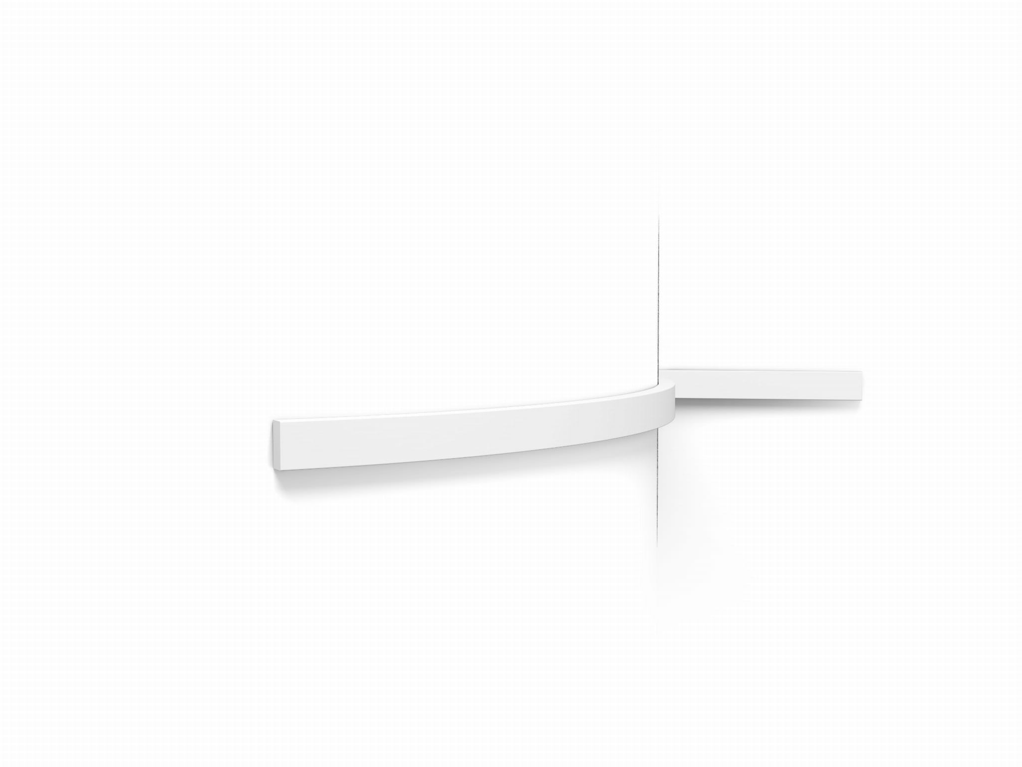 Wariant Flex Orac Decor to elastyczna wersja profili, która pozwala uzyskać płynne przejścia na ścianach i sufitach o konkawach oraz konweksach. Tworzywo jest sprężyste, stabilne wymiarowo i odporne na wilgoć, dlatego można je stosować również w korytarzach i łazienkach. Po zagruntowaniu przyjmuje farby wodorozcieńczalne, tworząc jednolite wykończenie. Idealnie współpracuje z elementami sztywnymi na odcinkach prostych, co ułatwia prowadzenie jednej, spójnej linii wokół całego pomieszczenia.