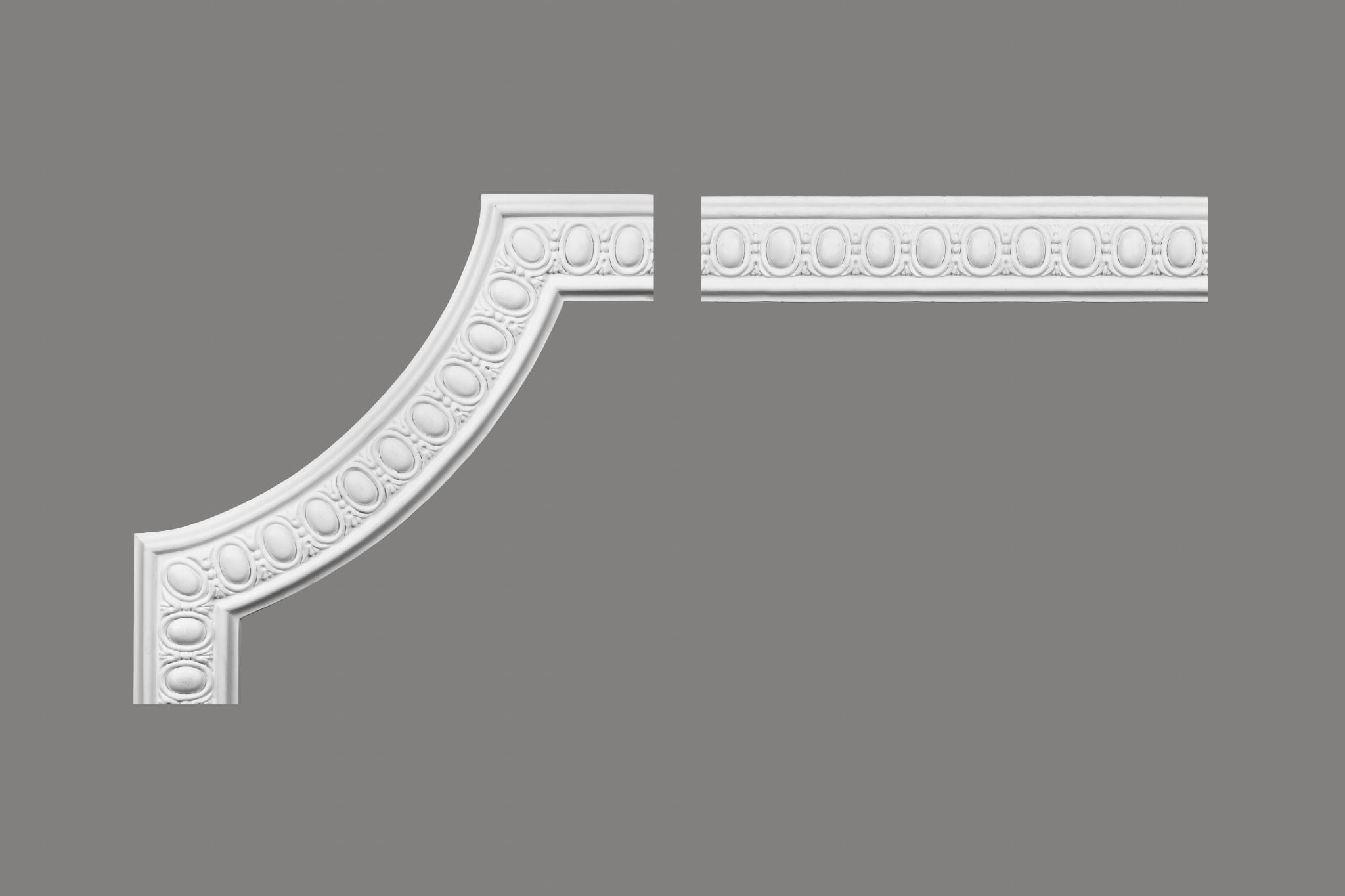 Model wykonano z ProFoam, lekkiego i jednocześnie gęstego tworzywa o wysokiej precyzji detalu. ProFoam jest odporny na wilgoć, stabilny wymiarowo i nie pęcznieje. Niska waga ułatwia montaż nad głową, a gładka powierzchnia zapewnia równomierne krycie farbą. Listwę łatwo przyciąć w skrzynce uciosowej. Łączenia można zaszpachlować i zeszlifować, aby stały się niewidoczne.